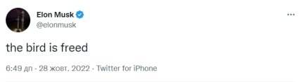 При этом сам Маск на своей странице в этой же соцсети своеобразно подтвердил завершение покупки. Он написал "птица освобождена", намекая на логотип компании. В своей другой публикации миллиардер также отметил, что купил платформу, чтобы помочь человечеству, и он хочет, чтобы "цивилизация имела общую цифровую городскую площадь".