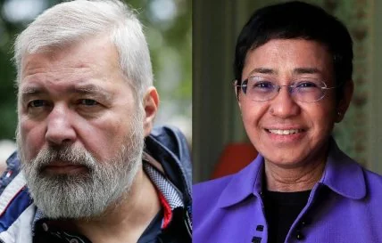 В 2021 году Нобелевскую премию мира присудили одновременно двум журналистам — главреду российской "Новой Газеты" Дмитрию Муратову и филиппинской журналистке Марие Рессе.
