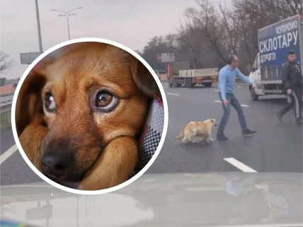 На трассе под Киевом водитель с добрым сердцем остановил движение транспорта для спасения двух собак (видео)