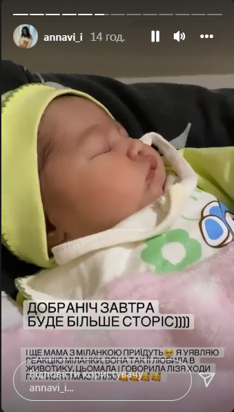 Информация об имени ребенка появилась в сториз на страничке жены певца — Иванны соцсети, где она показала малышку, которая крепко спит и пообещала большее количество новых видео и фото для подписчиков.
