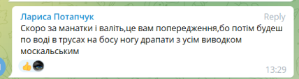 Ей также предлагают радоваться, что она успевает убежать сейчас – практически добровольно, пока россиян еще не гонят домой украинские солдаты.