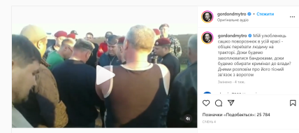 "Мой любимец Саша Поворознюк во всей красе — обещает переехать человека на тракторе. Пока будем увлекаться бандюками, пока будем выбирать криминал к власти? На днях расскажу о его тесной связи с врагом", — написал Гордон.