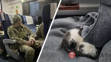 Фото котика, который едет в поезде Краматорск-Киев на руках у военного, растрогало сеть