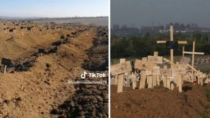 Жительница Мариуполя Людмила Васильева, которая снимает видео о разрушенном городе и выкладывает у себя в TikTok, показала кладбище в Мариуполе. Оно имеет впечатляющие размеры, могилы не разграничены, только торчат таблички. Кое-где установлены кресты, украшенные венками. Большинство могил безымянны, а на табличках написаны номера.