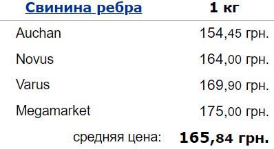 Свиные ребра за месяц подорожали в супермаркетах со 161,19 до 165,84 гривны за килограмм.