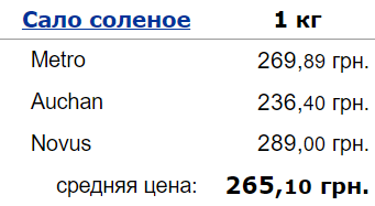Цены на сало в украинских супермаркетах