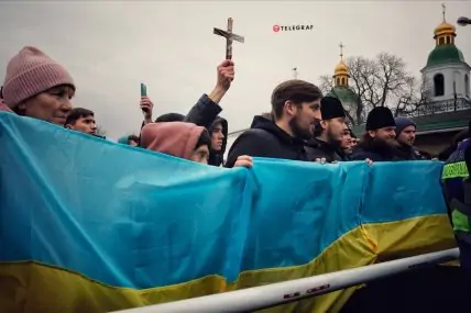 Отметим, что под Киево-Печерской лаврой вновь собралось много горожан. Некоторые из них являются противниками УПЦ МП и держат в руках плакаты с надписями "Рашизм не пройдет" и "Покайтесь, фарисеи". На месте также присутствует полиция, которая следит за порядком и не допускает стычек.