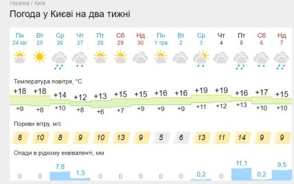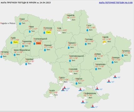 "24 апреля в большинстве областей ожидаются ливни с грозами, однако на температуру воздуха дожди существенно не повлияют", — пишет специалист.