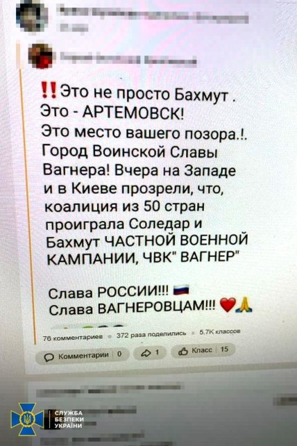 Вместе с этим злоумышленник восхвалял владимира путина и другое военно-политическое руководство россии. Также он негативно высказывался в адрес украинских защитников и всячески дискредитировал ВСУ.