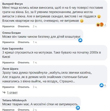 Помимо этого, звучали версии про сетку от выпадения котов защиты от голубей, а также примеры других стран.