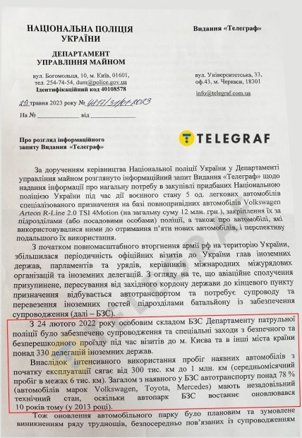 Как пояснили в Нацполиции в ответе на запрос "Телеграфа", из-за прекращения воздушного сообщения, сопровождение иностранных официальных делегаций, которых с 24 февраля 2022 года было 330, осуществляется исключительно автотранспортом.