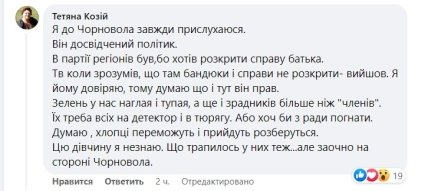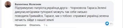 - Поддерживаю Тараса Чорновила за то, что говорит правду, а зеленое де**мо смоется и исчезнет, как предыдущие регионалы.