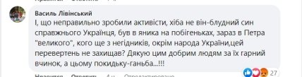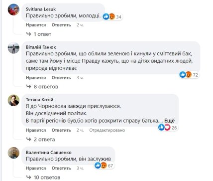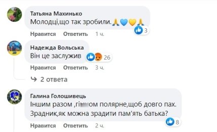 В Фейсбуке под постом "Телеграфа" на эту тему украинцы начали активно высказывать свое мнение. Кто-то поддержал такое поведение, а кто-то выступил против, высказав свое признание Тарасу Чорновилу.