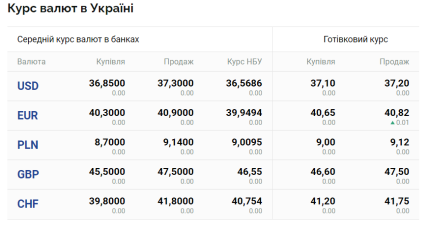 По данным "Минфина", сегодня, 22 июня, средний курс доллара в украинских банках составляет 36,85 грн (покупка) и 37,30 (продажа). Наличный курс — 37,10 (покупка) и 37,20 (продажа). В то же время официальный курс Национального банка Украины — 36,56.