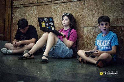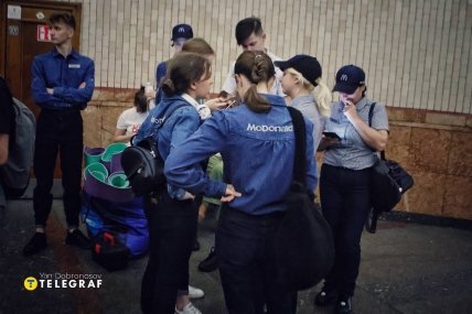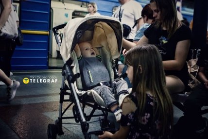 Мамы с детьми сидят на ковриках, стульчиках, ступеньках или своих же вещах и развлекают малышей как могут. Однако некоторые все равно капризничают — им наверняка хочется гулять на улице, а не прятаться от ракет в метро. Детки постарше играют в игры на смартфонах или смотрят мультики, чтобы хоть как-то отвлечься. В укрытие спустились даже сотрудники Mcdonalds, а это значит, что выдача заказов в популярном кафе быстрого питания на время тревоги приостановлена.