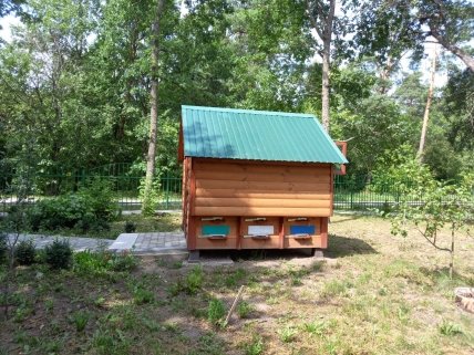 Каждый апидомик стоит на шести ульях: по три с двух сторон. В каждом из них живет до 50 тысяч пчел. Еще один стоит отдельно. Домики санаторий заказал у известной фирмы из Днепра, давно специализирующейся на их изготовлении.