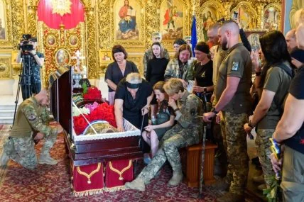 Прощание с воином проходило в Михайловском Златоверхом соборе. Провести его в последний путь пришли боевые товарищи из 132 отдельного разведбата и 46-й бригады ДШВ, друзья, родственники, а также глава партии "ЕС" и бывший президент Украины Петр Порошенко.