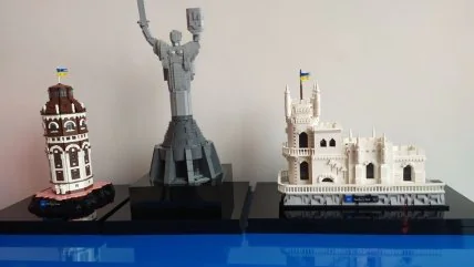 Инициатива LEGOwithUKRAINE создала из конструктора три знаковых для Украины постройки: киевскую Родину-мать, крымское Ласточкино гнездо и мариупольскую старую водонапорную башню. Любой желающий может выиграть одну из фигурок за донат на платформе UNITED24.