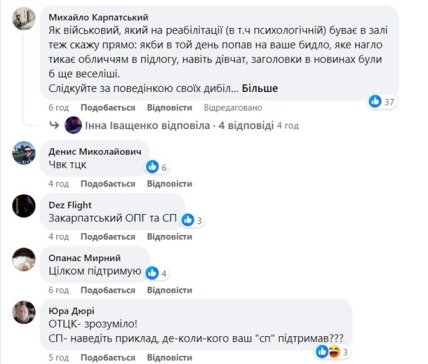 "Вручение повесток в спортзалах законно. Мужчины призывного возраста, сознательно избегая военной службы, занимаются в спортивных залах не привилегированными по сравнению с военнослужащими ВСУ, которые держат оборону и бьют врага", — говорят в Закарпатском ТЦК СП.