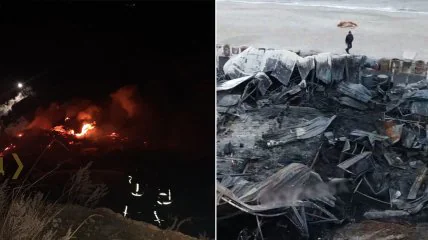 Огонь хватил около 400 "квадратов" и полностью уничтожил заведение, которое находилось возле моря на пляже "Дельфин".
