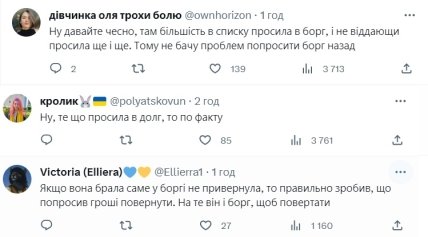 В комментариях под постом блогера некоторые поддержали мужчину, ведь часть денег была взята в долг, а сам он в письме указал, что девушка обещала их отдать.