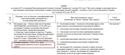 Значительная часть нововведенных экономических ограничений связана с украинскими гражданами, которые перешли на сторону России после оккупации Крыма в 2014 году. Несколько десятков человек, которые работали во время выборов в Госдуму РФ на территории Крымского полуострова, теперь находятся под санкциями на срок от десяти лет. Есть и те, кто попал "под раздачу" бессрочно.