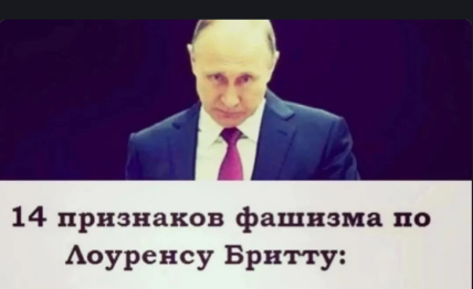Интересно, что в сети можно увидеть точно такую же картинку про 14 признаков фашизма, однако с портретом Путина над названием.