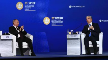 Сенсацией на так называемом экономическом форуме в санкт-петербурге стал прежде всего президент Казахстана Токаев. Он едва ли не единственный из более или менее серьезных лидеров мира, кто посетил это мероприятие. Лидер Казахстана отметился резкими открытыми высказываниями прямо в лицо путину: что россия не имеет права вести войну; посмеялся над, как он выразился, квазигосударственными образованиями "лнр-днр", в грубой форме отказал россии в признании этих формирований. Он также напомнил путину, что Советским Союзом в основном руководили выходцы из Украины.