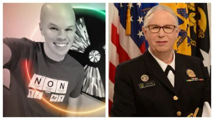 "Удивительная возможность связаться с одним из немногих других трансгендерных правительственных чиновников, адмиралом Левин — не буду врать, было здорово посочувствовать другому трансгендеру, столкнувшемуся с ненавистью", — написано Бринтоном в подписи к фотографии.