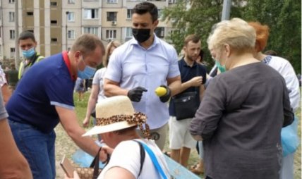Раздавал лимоны людям, потерявшим жилье на Позняках