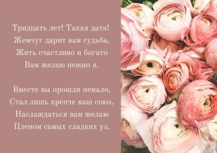 Поздравления с 30-летней годовщиной свадьбы: красивые картинки и открытки