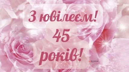 - С прекрасной датой 45-летия! Пусть этот день рождения пройдет ярко, незабываемо и весело. Желаю радости на долгие года, чтобы всегда была ты так весела. Желаю веры, надежды и любви и чтоб всегда вперед идти. Пусть все твои мечты осуществляются.