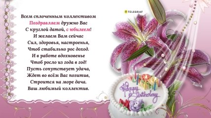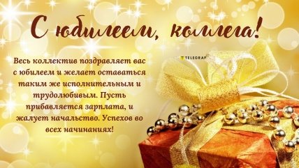 "Телеграф" собрал красивые пожелания, чтобы вы могли поздравить с юбилеем коллегу. Найти подходящие слова в виде стихотворения и прозы, а также открытки можно в этом материале.