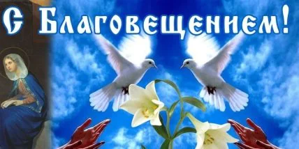 Вітаю з Благовіщенням Пресвятої Богородиці і щиро бажаю завжди сподіватися на світле і добре, ніколи не відпускати від душі своєї віри, жити тільки з благими намірами і відкривати двері в новий день з великим натхненням і почуттям радості.