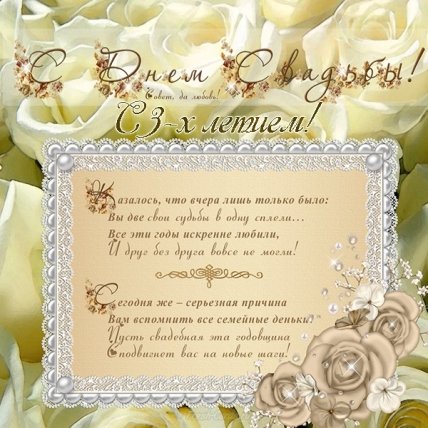Поздравления со 3 годовщиной свадьбы на 9 мая: стихи и открытки