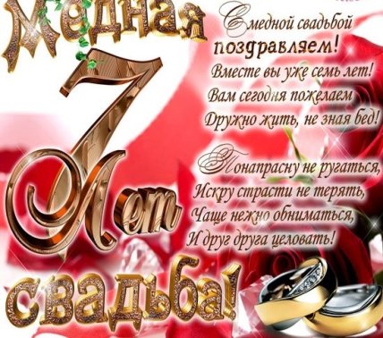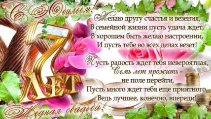 Душевные поздравления с 7 годовщиной свадьбы в стихах и открытках на 14 мая