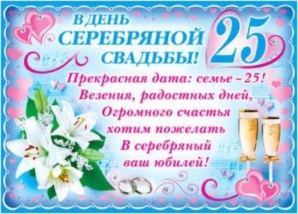 Нежные СМС-поздравления с 25 годовщиной свадьбы на 2 июня