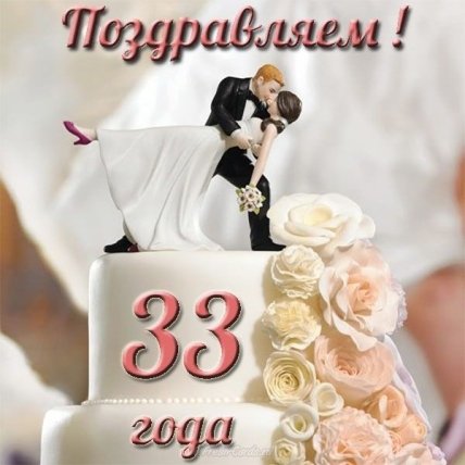 Поздравляю с тридцать третьей годовщиной свадьбы. Эту дату называют как "каменной", так и "клубничной". А это означает, что в этот день просто необходимо пожелать, чтобы любовь была крепче любого камня, но при этом оставалась нежной и сладкой, как клубника.
