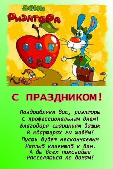 Пусть в свой праздник работники в сфере недвижимости услышат немало благодарных слов от клиентов, коллег и руководства!