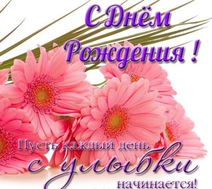 С днем рождения! Пусть сбудутся заветные мечты и тайные желания. Пусть солнце греет своими лучами, а счастье никогда не покидает твой жизненный путь. Пусть родные всегда будут рядом, а благополучие и достаток поселятся навсегда в твоем уютном доме.