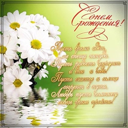 Поздравляю с днём рождения и от чистого сердца хочу пожелать жить прекрасными мгновениями и искренними чувствами, каждый раз встречать счастливый рассвет и провожать чудесный закат, верить в самое лучшее и дорожить самым главным для сердца.