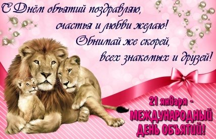Поздравляю с Днём объятий и желаю искренних чувств и великой любви, нежности сердца и щедрости души, счастливых событий и радостных эмоций, невероятной удачи и крепких объятий родных людей.
