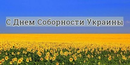 Поздравляем жителей Украины с Днем соборности, с днем единения украинских земель. Всем бесконечного счастья, крепкого здоровья, благополучия. Пусть жизнь в нашей чудесной стране будет для каждого в достатке, радости, спокойствии. Пусть всегда над нашими землями светит солнце, и всем нам здесь будет светло, тепло и уютно!