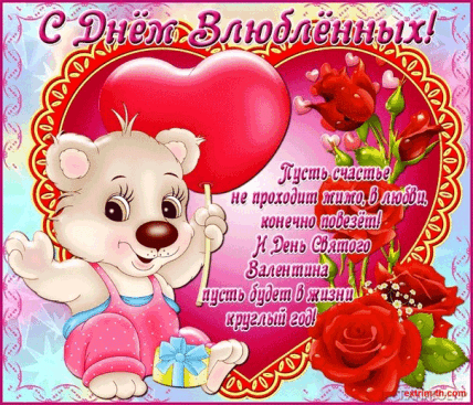 Поздравляю всех с днем святого Валентина! Желаю всем влюблённым и не только, безграничной, всепрощающей, искренней, а главное взаимной любви. Пусть счастье и взаимопонимание будут постоянными вашими спутниками. Желаю вам, крепкого здоровья, успехов во всех начинаниях и благополучия.