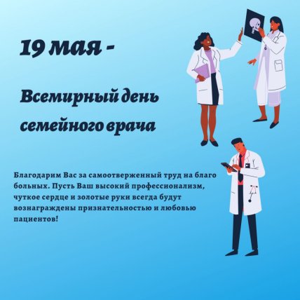 19 мая - это еще один повод отметить важный, сложный и нужный труд медиков. Во всем мире в этот день отмечается Всемирный день семейного врача.