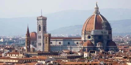 Самое популярное место во Флоренции - его Дуомо (Собор Санта Мария-дель-Фьори). Огромный готический собор, выполненный из зеленого, розового и белого мрамора со сложными дверями и интересными статуями не сможет оставить вас равнодушным. Вы можете пройти в церковь бесплатно. Баптистерий датируется 11-м веком и делает его одним из старейших зданий Флоренции. Его внешний облик сделан из зеленого и белого мрамора и имеет три набора удивительных бронзовых дверей (репродукции - оригиналы находятся в музее Дуомо). Площадь перед собором впечатляет, т.к. великолепия собора вполне хватает как на площадь, так и на ее окрестности.