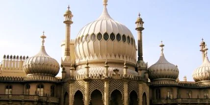 В 1812г. принц Уэльский становится регентом и просит архитектора Джона Нэша провести реконструкцию и расширение брайтонского Павильона, причем ставит задачу превратить Павильон в дворец на подобии индийских, чтобы он был достоин Великих Моголов. Реконструкция закончилась лишь в 1822г., но Нэш блестяще справился с задачей – отделанный в белой гамме, украшенный минаретами и остроконечными куполами, Королевский павильон кажется частичкой волшебной Индии, чудом перенесенной в английский Брайтон. Внутреннее убранство также выполнено в восточном стиле: стены Центрального салона отделаны китайскими обоями; стилизованный серебряный дракон поддерживает огромную хрустальную люстру в банкетном зале; даже чугунные колонны на кухне выполнены в виде пальм. Говорят, что когда после окончания реставрации Георг зашел во дворец, он заплакал от радости.
