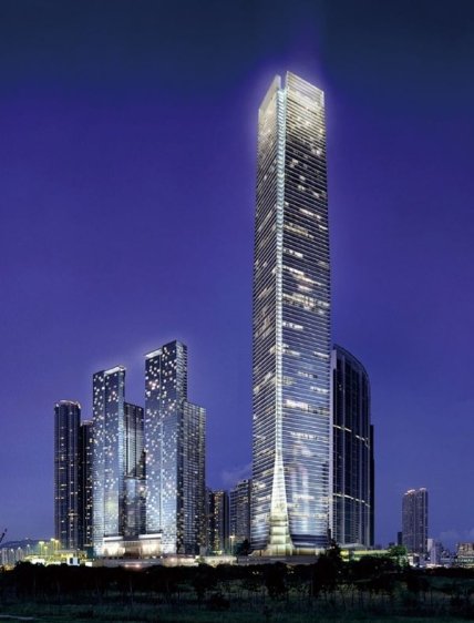 Здание имеет 118 этажей и 484 метра высоты, находится в западной части района Коулун. Интересно, что сначала планировалось строить 574-метровый небоскрёб, но в Гонконге запрещено строить что-либо выше Пика Виктории (гора, высшая точка Гонконга, 552м. высоты) и проект оперативно скорректировали.