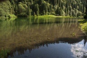 Ниже озера, в речке, водится форель. Летом средняя температура воздуха в этом месте доходит до отметки +23 градуса, а воды - +6.