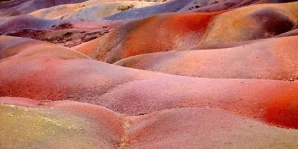 Семицветные земли – это геологическое образование и главная достопримечательность на равнинах Шамареля, в районе Черной реки на юго-западе Маврикия с 1960 года. Эти небольшие по площади песчаные дюны состоят из песка семи цветов: красного, коричневого, фиолетового, зеленого, голубого, пурпурного и желтого. Особенность в том, что песок состоит из хаотично окрашенных слоев, образуя сюрреалистические рисунки. Если взять горсти песка разных оттенков и смешать их между собой, получится масса, разделенная на слои по спектру.